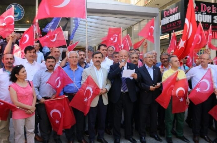 Türkiye Kamu-Sen 15 temmuz gecesi yaşanan demokrasiyi kesintiye uğratma girişimlerini protesto etti.