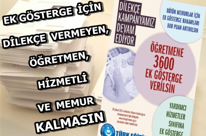 Merkez Yönetim Kurulumuzun aldığı karar doğrultusunda, 26 Şubat 2015 tarihinde Başbakanlık makamına iletilmek üzere bir dilekçe kampanyası başlatılarak ek gösterge rakamlarının artırılması talebi gündeme getirilmişti..