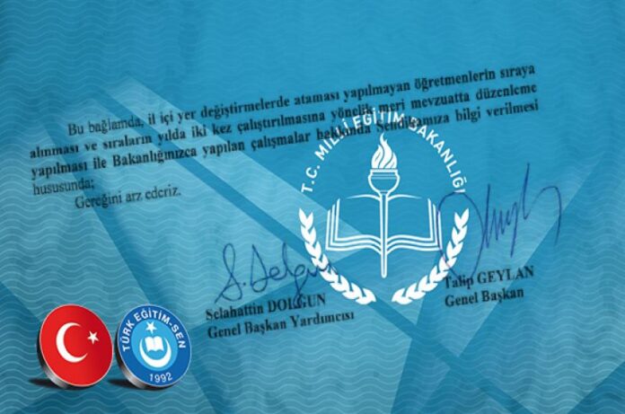 Bilindiği üzere, Milli Eğitim Bakanlığı tarafından yapılan il içi yer değiştirmelerinde sıra sistemi uygulanmamakta, yer değiştirmenin yapıldığı dönemde ataması yapılmayanların atama talebi sona ermektedir. Oysa ki, 2015 yılı öncesinde yapılan il içi yer değiştirmelerde sıra sistemi uygulanmakta ve sırası gelen öğretmenin ataması yapılmaktaydı. Ancak, 17.04.2015 tarih ve 29329 sayılı Resmi Gazete’de yayımlanan Öğretmen Atama ve Yer Değiştirme Yönetmeliği ile öğretmen atama ve yer değiştirme işlemlerine ilişkin önceki yönetmelik yürürlükten kaldırılmış ve il içi yer değiştirmelerde ataması yapılmayanların sıraya alınması uygulamasına son verilmiştir. Türk Eğitim Sen olarak, Bakanlıkla yapmış olduğumuz görüşmelerde, halen yürürlükte olan yönetmelikte il içi yer değiştirmelerde ataması yapılmayan öğretmenlerin sıraya alınması ve sıraların yılda iki kez çalıştırılmasına yönelik düzenleme yapılması gerektiği belirtilmiştir. Kaldı ki, il içi yer değiştirmelerde sıra sisteminin uygulanması hususunda Bakanlığa 12.10.2018 tarih ve 843 sayılı yazımız ile de başvuru yapılmış, ancak başvurumuza cevap verilmemiştir. Boşalan normlara atanmak için sırada bekleyen öğretmenlerimizin sıralar çalıştırıldığında norm açığı bulunan eğitim kurumlarına yer değiştirebileceği ve açık normların bu şekilde hakkaniyete uygun olarak doldurulacağı açıktır. Türk Eğitim Sen olarak konunun takipçisi olmaya devam edeceğiz.